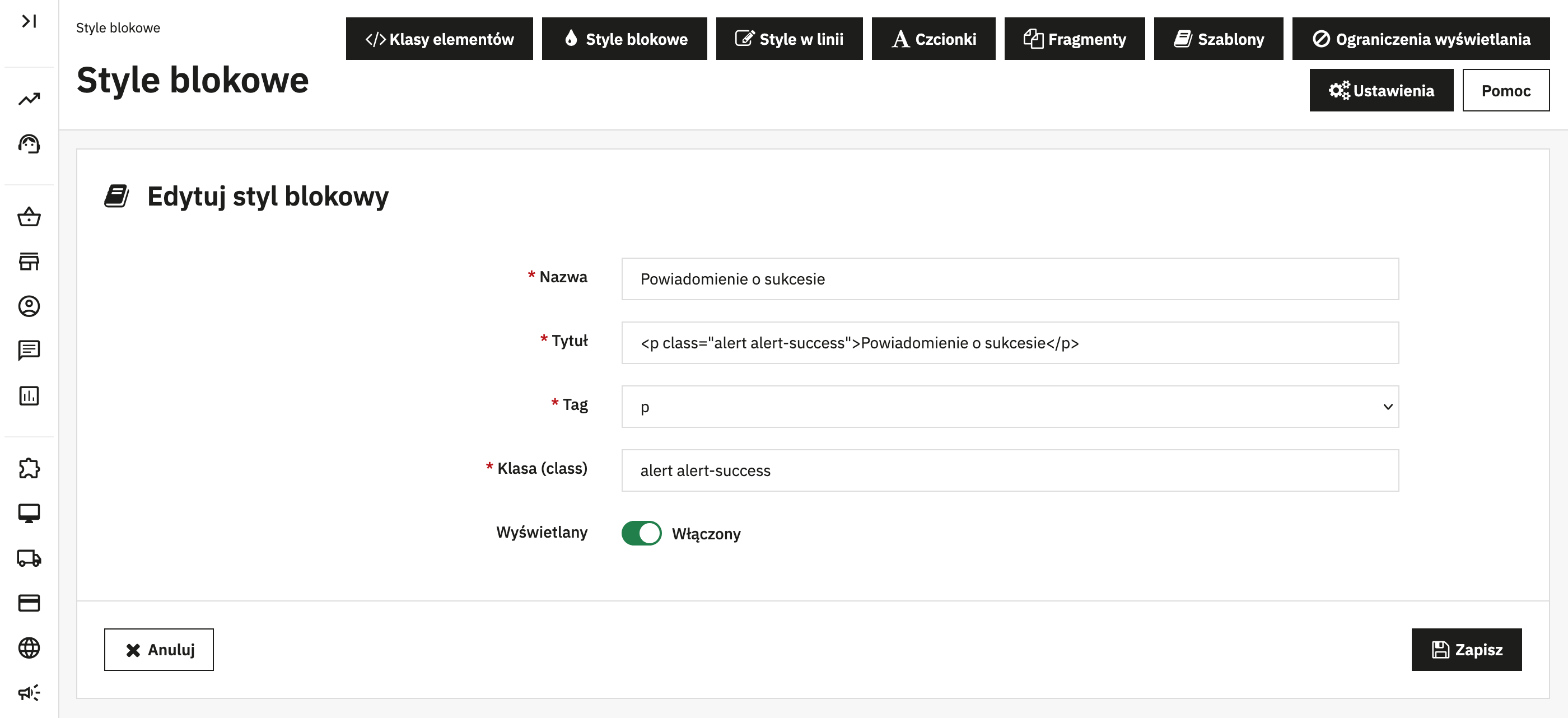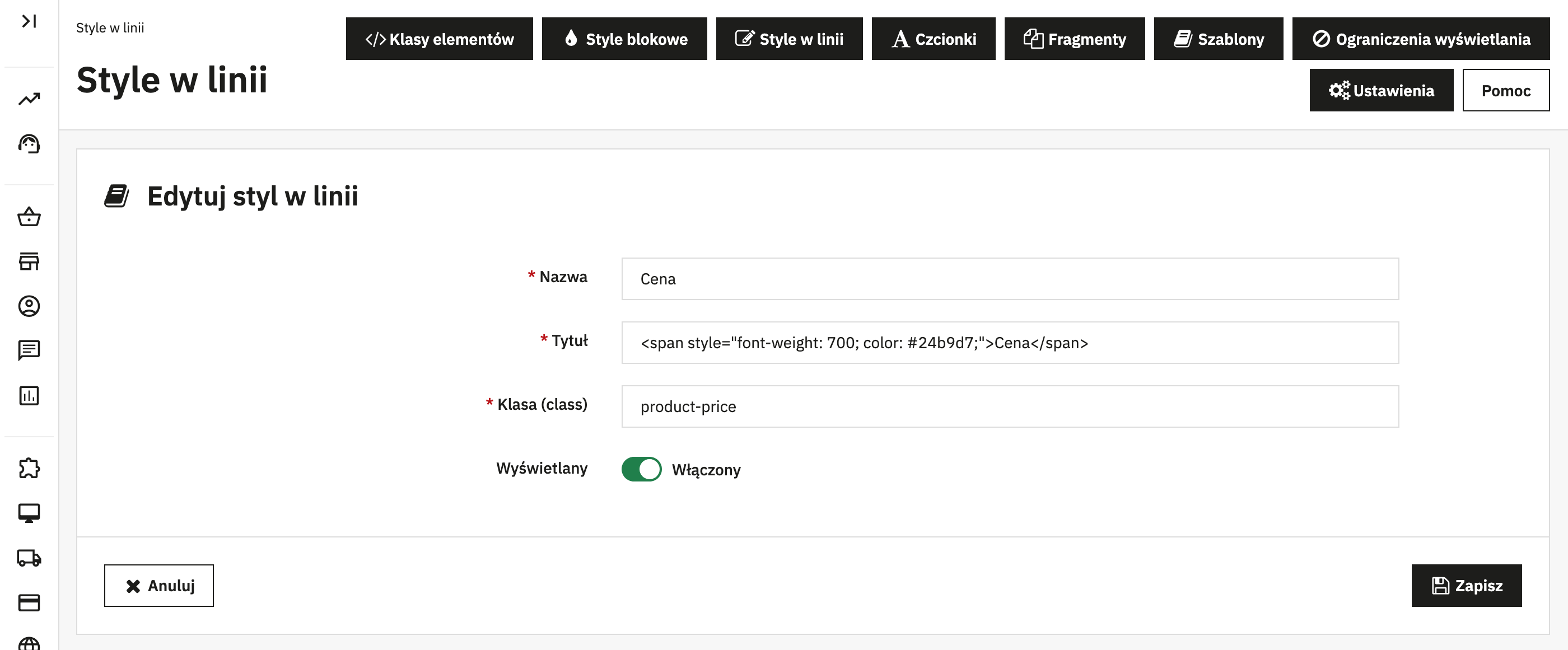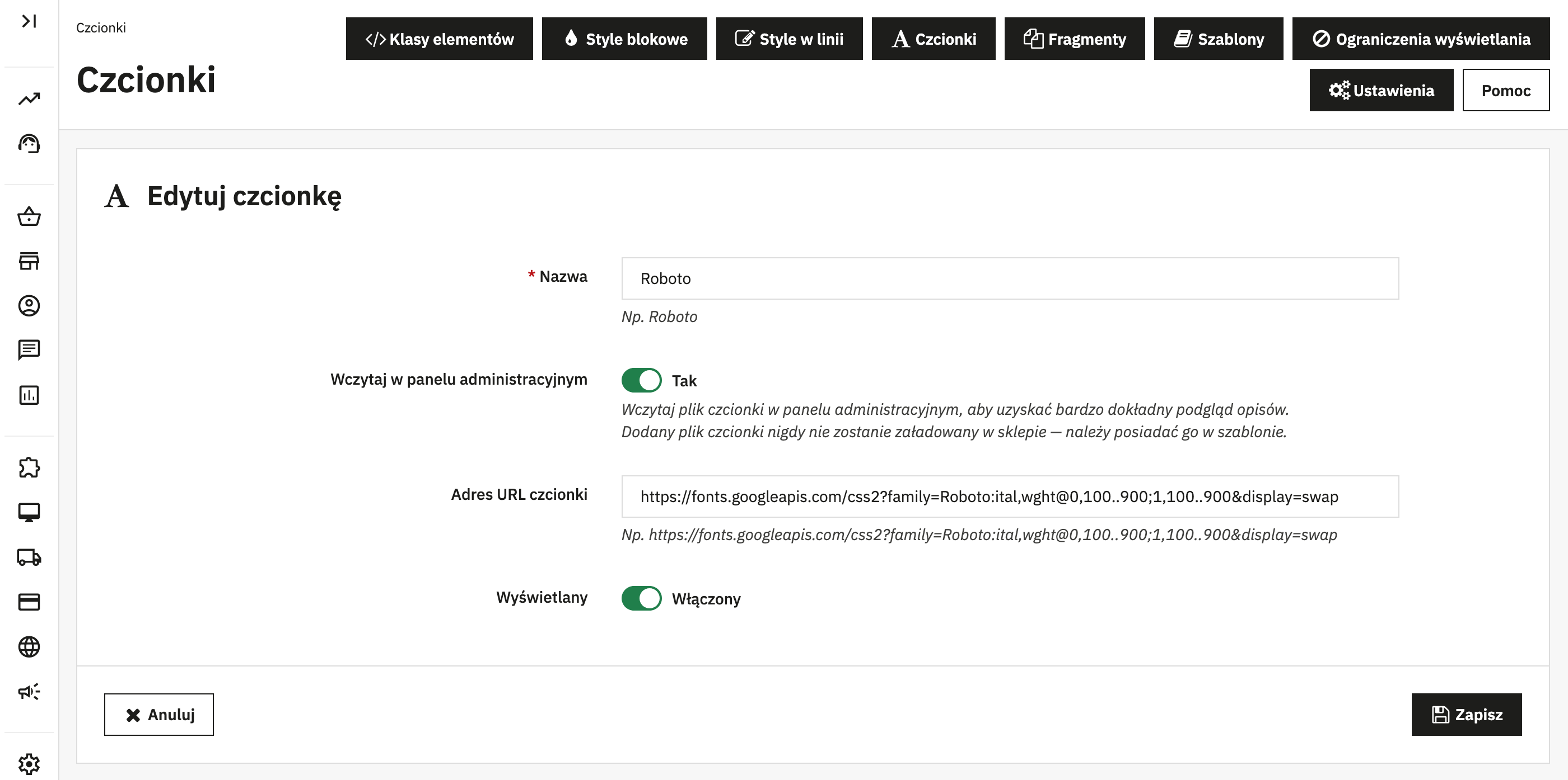 Masz do wyboru dwa tryby: globalny styl widoczny na froncie i w panelu lub styl działający tylko w edytorze idealny, jeśli chcesz zmienić wygląd podglądu bez wpływu na stronę sklepu.