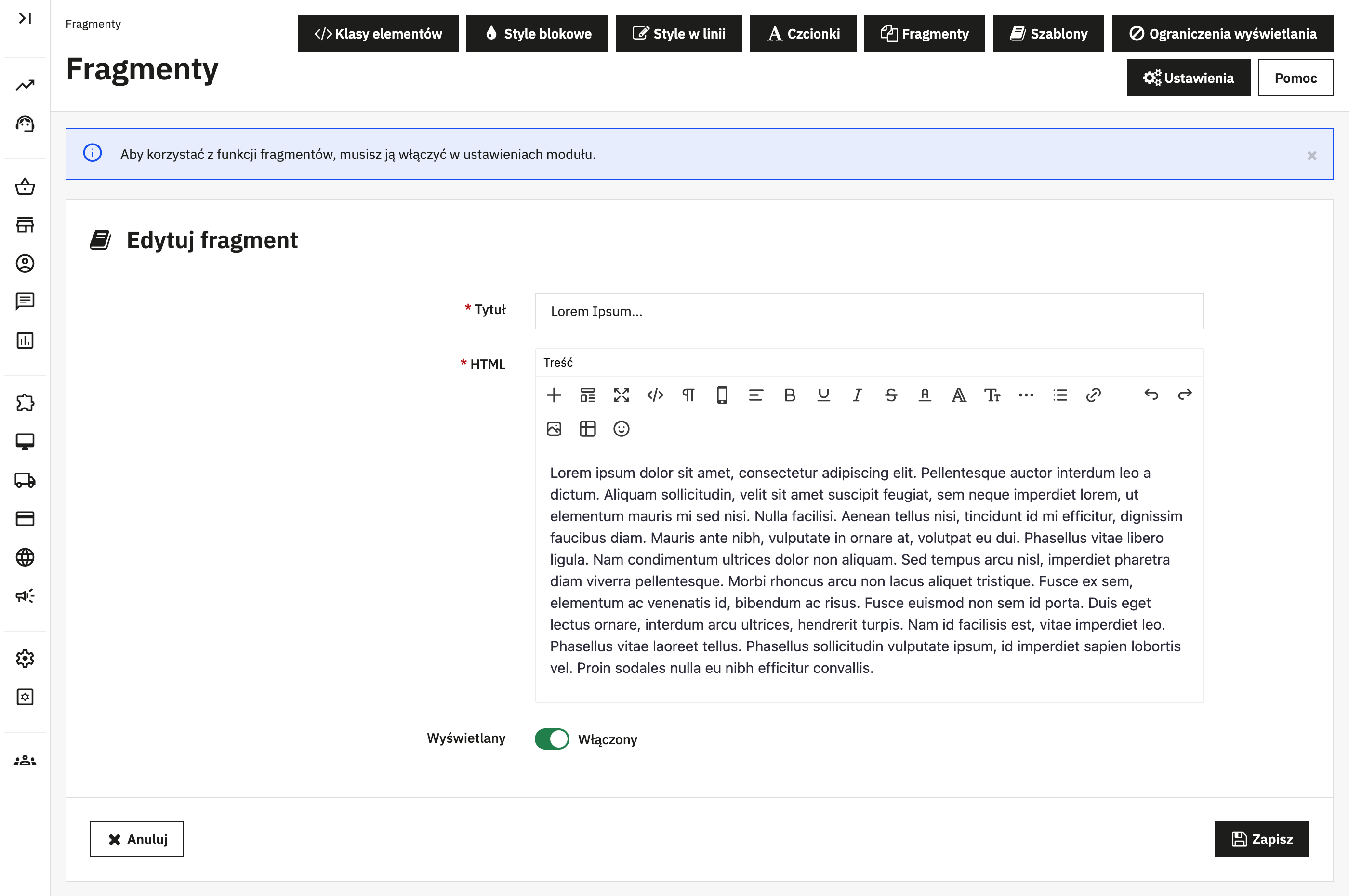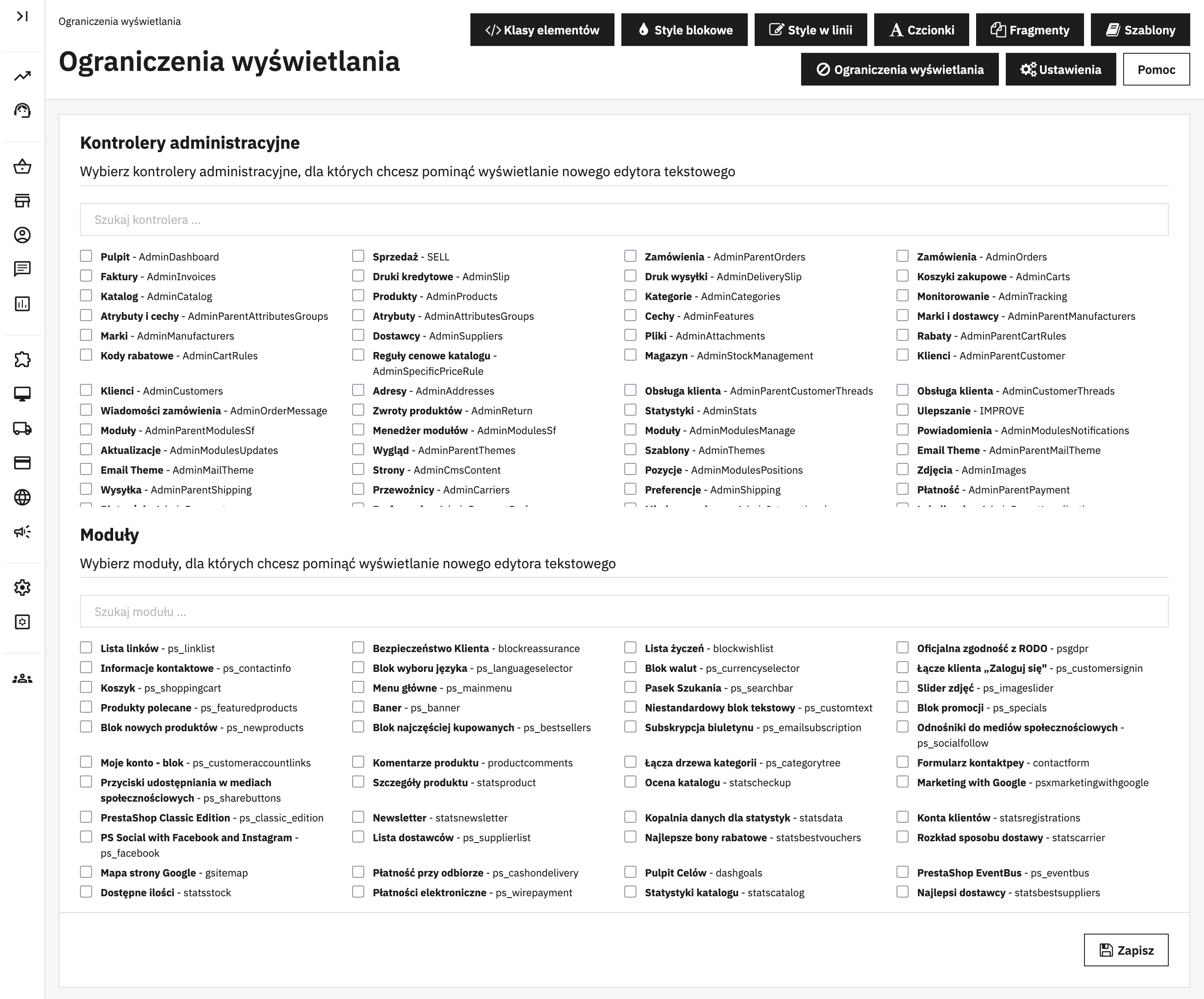 Jeśli jednak wolisz większą kontrolę, możesz samodzielnie ograniczyć widoczność edytora tylko do wybranych podstron lub modułów. Zrobisz to z poziomu intuicyjnej zakładki ograniczeń szybko i bez potrzeby ingerencji w kod.